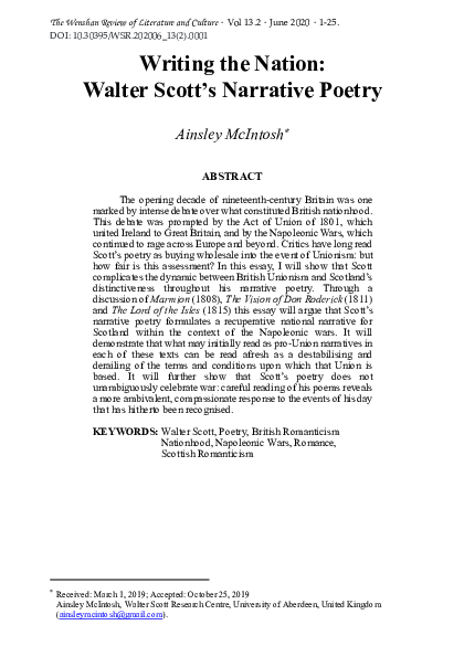 Pdf Writing The Nation Walter Scott S Narrative Poetry Ainsley Mcintosh Academia Edu